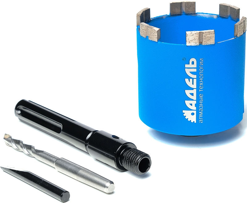 Алмазная коронка с пылеудалением для подрозетников по железобетону Адель Super Fast SF DE-D70 SDS-Max 68/65 мм (Adel Супер Фаст СФ ДЕ-Д70 СДС-Макс 68/65 мм) с адаптером М16 – SDS-Max, центровочным твердосплавным сверлом и клином предназначена для скоростного сверления железобетона (армированного бетона), бетонных блоков, газобетона, кирпича и других строительных материалов с использованием ручного электроинструмента без охлаждения водой.