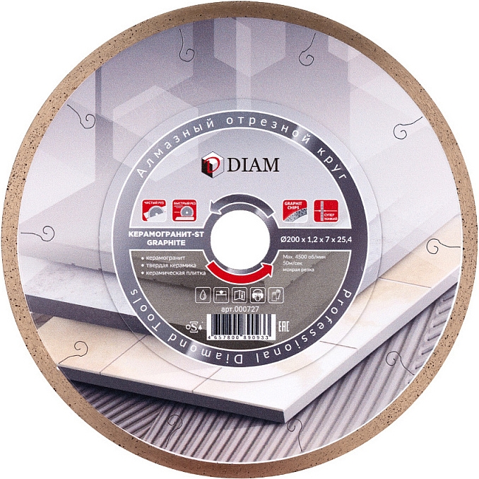 Цена и технические характеристики алмазного отрезного круга Diam Extra Line 1A1R Корона Керамогранит-ST Graphite 200 мм: