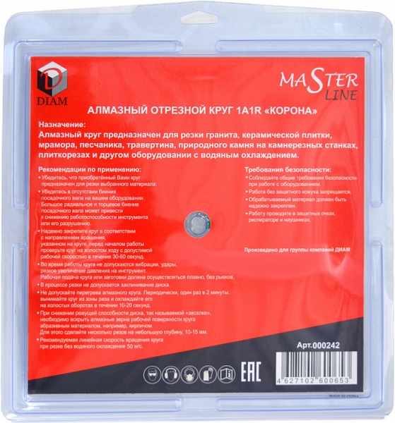 - Корейские технологии: изготовлен по технологиям и под контролем ведущих производителей алмазного инструмента Южной Кореи, специально по заказу ГК Диам