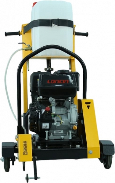 - Бензиновый двигатель Loncin G390F обеспечивает необходимую автономность работ в полевых условиях: в обычном режиме работы при глубине прямоугольного реза 6 см и ширине 1 см достигается скорость 1 м/мин по асфальту и 0,5 м/мин по бетону
