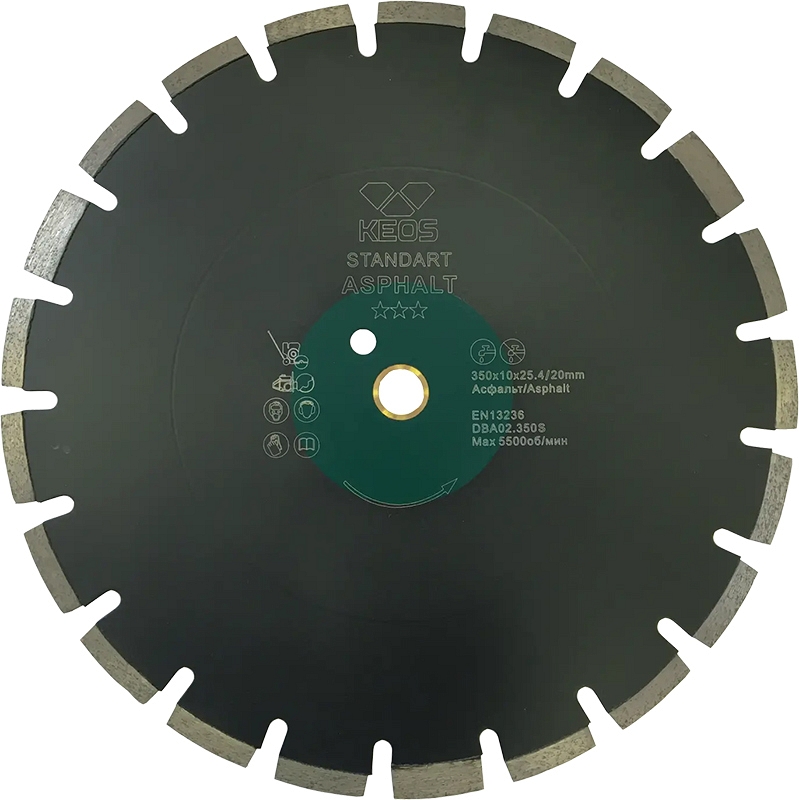 Цена и технические характеристики диска алмазного сегментного по асфальту Keos Standart Asphalt 350 мм: