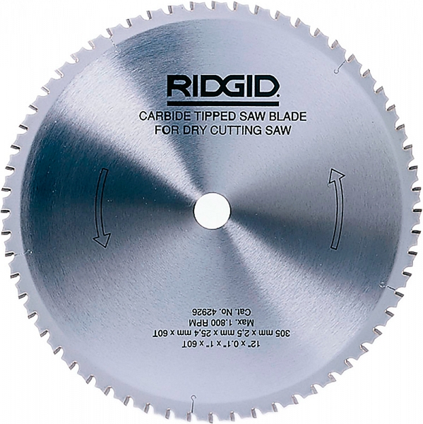 Диск пильный твердосплавный для пилы Ridgid 305×2,5×25,4 мм (Риджид 305×2,5×25,4 mm) – профессиональный диск с зубьями из карбида вольфрама, предназначенный для резки стали, меди, алюминия и пластмассы толщиной стенки до 6 мм с использованием сухопильной дисковой пилы Ridgid 590.