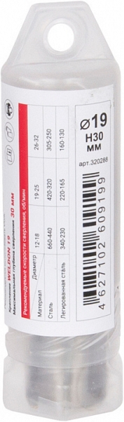 Цена и технические характеристики корончатого сверла по металлу Diam HSS 19×30мм: