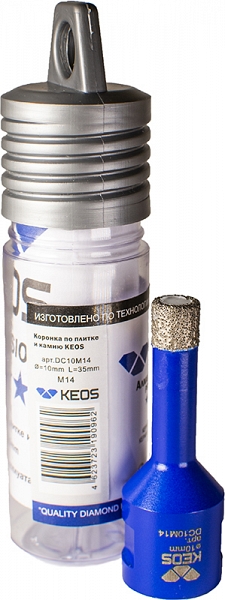 Цена и технические характеристики коронки алмазной по керамограниту Keos Professional Vacuum Brazed M14 10 мм: