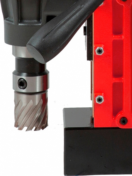 - Большой рабочий ход позволяет с легкостью менять корончатые сверла и упрощает центрирование отверстия