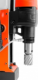 - Для качественного сверления и сохранения ресурса кольцевых сверл, предусмотрена регулируемая подача смазочно-охлаждающей жидкости (СОЖ)
