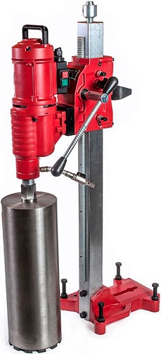 Машина алмазного бурения Brexit BrexDril 255 (Брекзит БрекзДрил 255) предназначена для бурения отверстий алмазными кольцевыми коронками Ø 15 – 255 мм в особо прочных материалах: бетоне, железобетоне разной степени армирования, кирпичной и каменной кладке, натуральном или искусственном камне с подачей воды для охлаждения.
