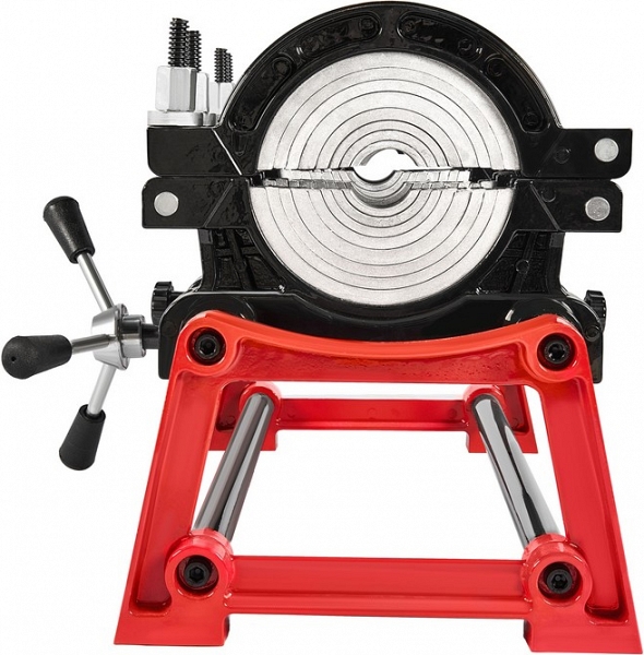 - Центратор с 4-мя откидными зажимами и фиксатором имеет большой запас прочности за счет качественного сплава и ребер жесткости, что позволяет сваривать полимерные трубы с любым показателем SDR