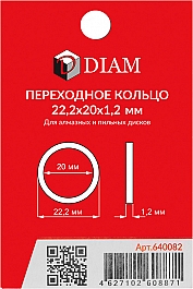 Цена и технические характеристики переходного кольца для алмазных и пильных дисков Diam 22,2×20×1,2 мм: