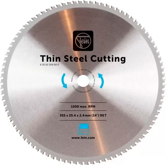 | 63502304000 | Fein Thin Steel Cutting 355×25,4×2,4 мм | Fein MKAS 355 | 355 мм (14") | 25,4 мм | 2,4 мм | 90 шт. | 1500 об/мин |