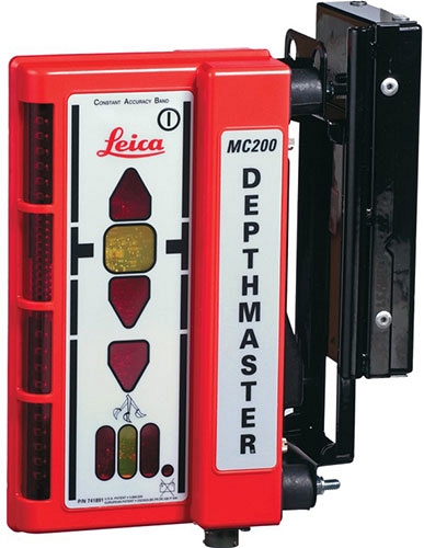 Приемник Leica MC200 Depthmaster (Лейка МЦ200 Депзмастер) предназначен для строительных и землеройных работ. Осуществляет контроль уровня рабочего органа машины относительно референсной плоскости, задаваемой ротационным лазером и контроль отклонения от вертикали. Используется на бульдозере, грейдере, скрепере или коробчатом отвале.