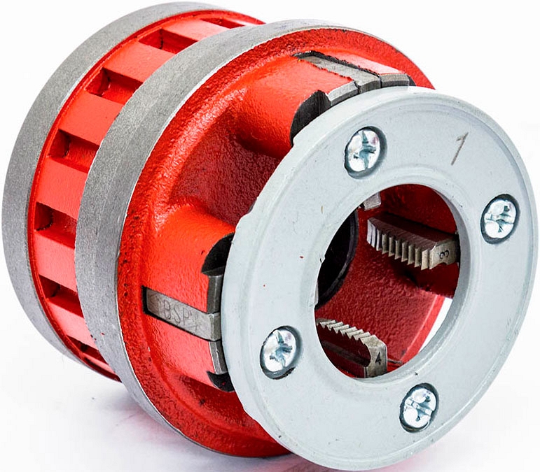 Резьбонарезная головка для ручного клуппа Kern BSPT R HSS 1" (Керн БСПТ Р ХСС 1") предназначена для нарезания правой конической трубной резьбы BSPT R на стальных трубах Ø 1" с помощью ручных резьбонарезных клуппов Kern, а также других производителей.