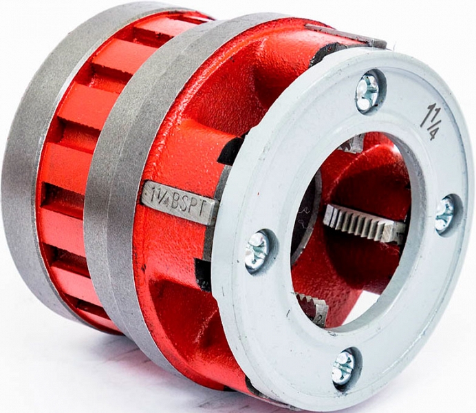 Резьбонарезная головка для ручного клуппа Kern BSPT R HSS 1 1/4" (Керн БСПТ Р ХСС 1 1/4") предназначена для нарезания правой конической трубной резьбы BSPT R на стальных трубах Ø 1 1/4" с помощью ручных резьбонарезных клуппов Kern, а также других производителей.