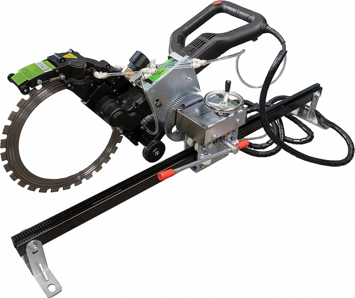 – Позволяет делать рез длиной до 1200 мм с учетом места под установку самого кольцереза - Комплектация: включает саму направляющую рельсу и каретку с фиксирующим механизмом для установки и снятия кольцереза