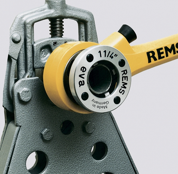- Rems Eva Set R 3/8"-1/2"-3/4"-1"-1 1/4". Ручной резьбонарезной клупп для трубной резьбы R 3/8", 1/2", 3/4", 1", 1 1/4". Для правой резьбы. Один храповый рычаг для всего рабочего диапазона. Быстросменные резьбонарезные головки и плашки для правой трубной конической резьбы ISO 7-1, EN 10226 (DIN 2999, BSPT) R 3/8", 1/2", 3/4", 1", 1 1/4". В картонной упаковке.