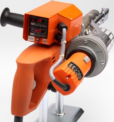 Профессиональный ручной сварочный экструдер HSK 30 DE (ХСК 30 ДЕ) с производительностью до 3 кг/ч предназначен для экструзионной сварки ПЭ, ПП, ПВХ и ПВДФ листов, труб, геомембран и других фасонных изделий толщиной 8 – 35 мм. Эффективный в применении, как в цеху, так и на строительной площадке.