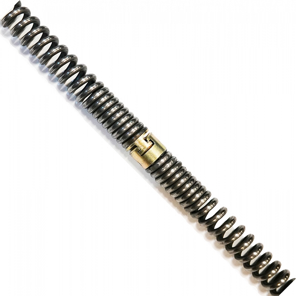 - Универсальный Т-образный замок обеспечивает надежное сцепление спиралей между собой для удлинения и с прочистными насадками