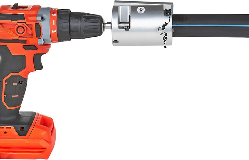 Устройство для снятия оксидного слоя с полиэтиленовых труб Gas Fusion УСО-140 (Газ Фьюжин USO-140) – скребок под дрель или шуруповерт для эффективной зачистки полиэтиленовых (пэ, пнд) труб Ø 140 мм перед муфтовой раструбной и электромуфтовой сваркой в стесненных условиях ограниченного пространства.